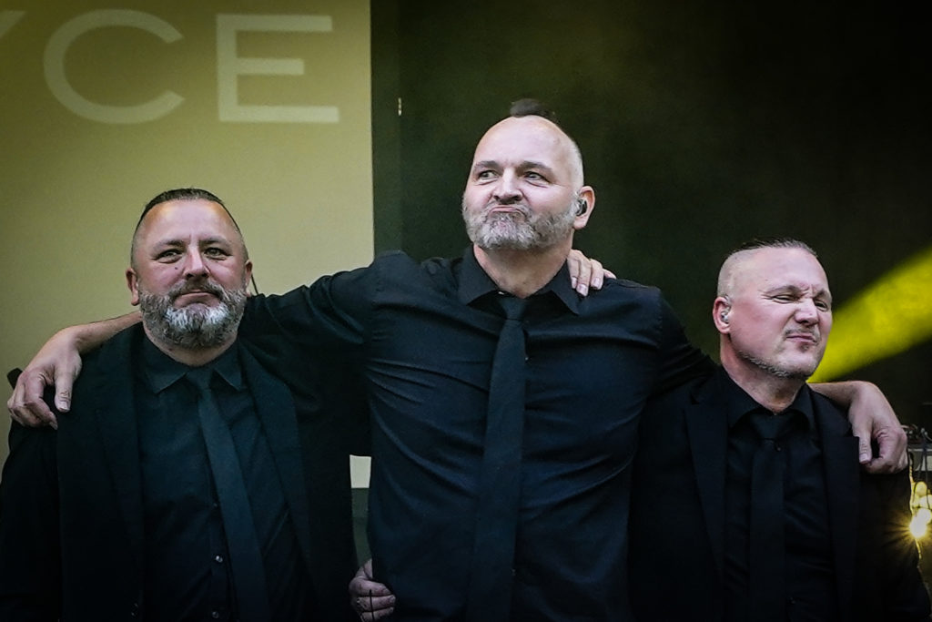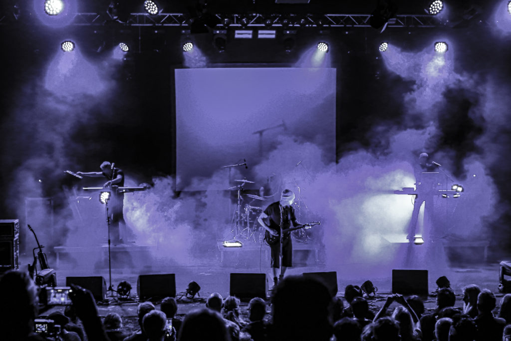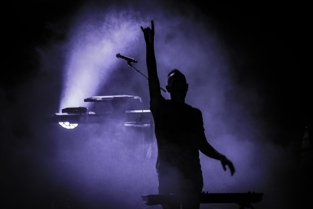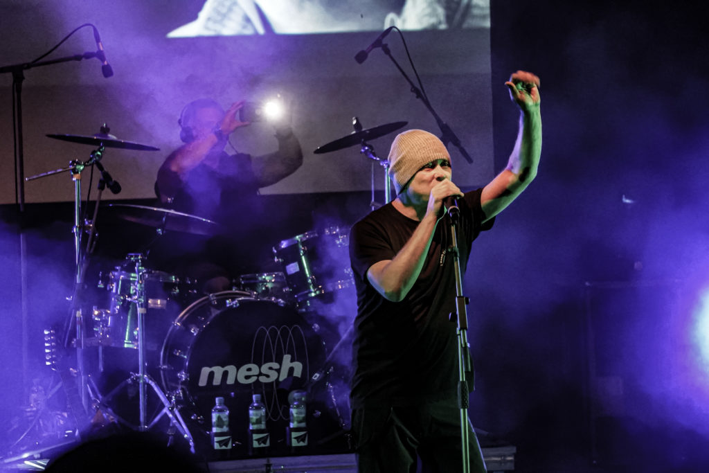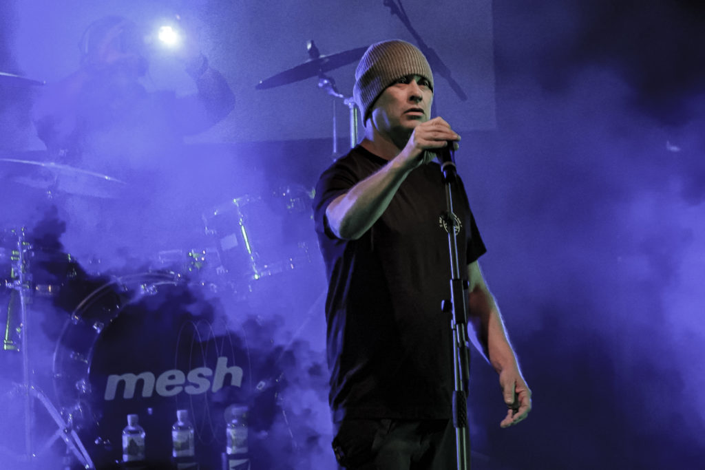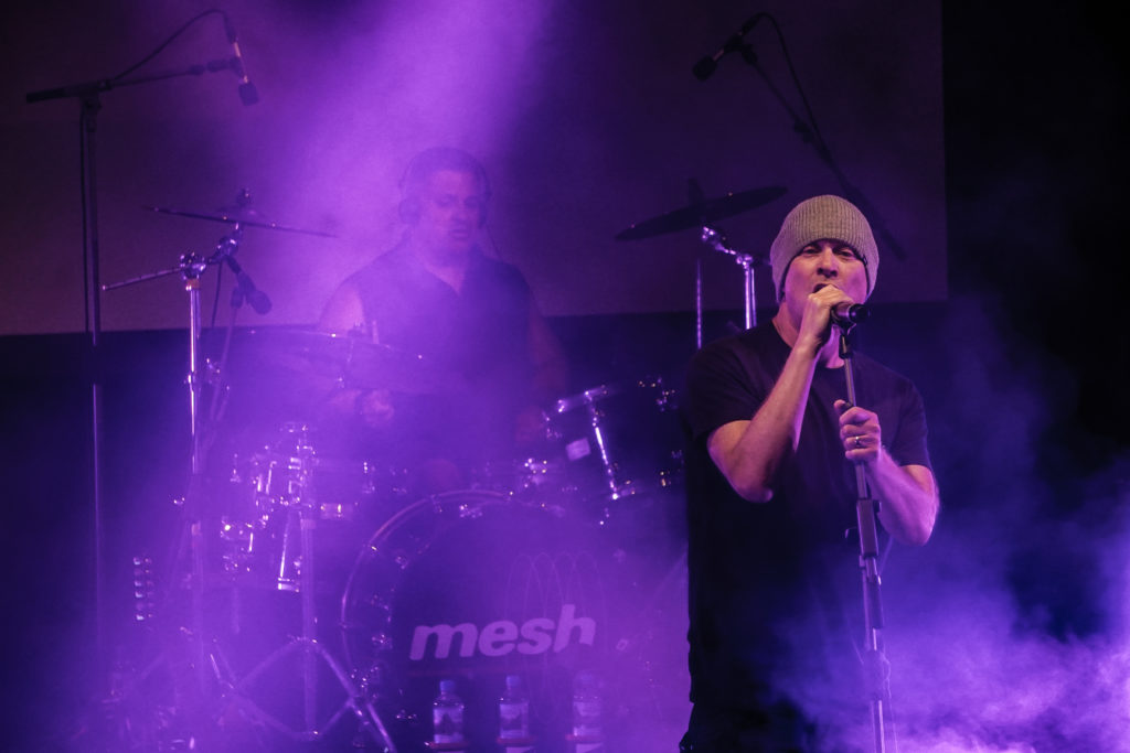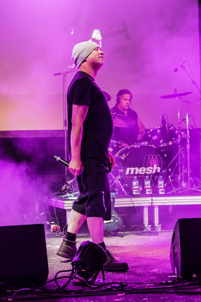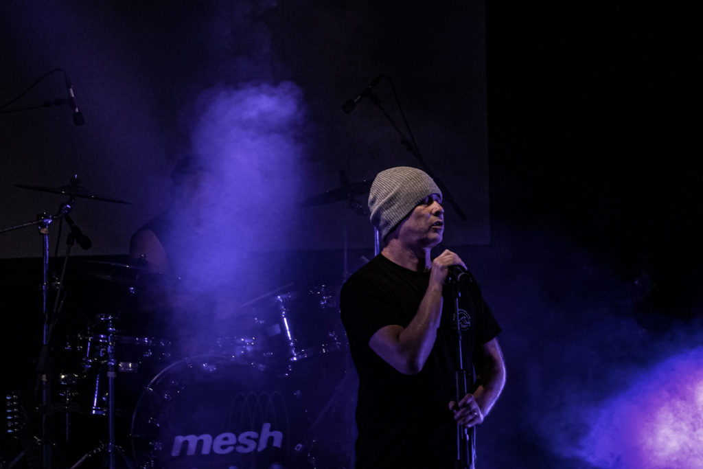 Zum Abschluß eines wunderbaren Tages traten nun mesh an. Die englische Synthi-Pop Band hatte anfänglich mit einigen Tonproblemen zu kämpfen, das Micro von Mark Hockings brachte keinen Ton heraus und es dauerte einen Song lang, bis es von den Verantwortlichen behoben werden konnte. Aber auch das wurde mit lautem Applaus quittiert, ein freundliches Publikum unterstütze die Band und so konnte mesh ihr Konzert fortsetzten. Das eher ruhige Set kam bei den Fans gut an, ein toller Ausklang eines gelungenen Tages. 20 Songs trugen uns in die langsam abkühlende Nacht, das Lichtspiel auch hier wieder großartig. Seht hier ein paar Bilder: