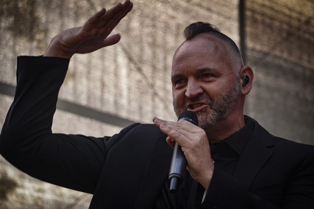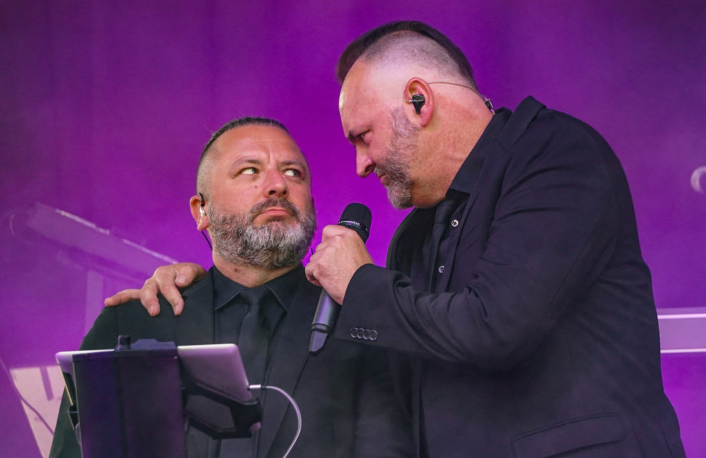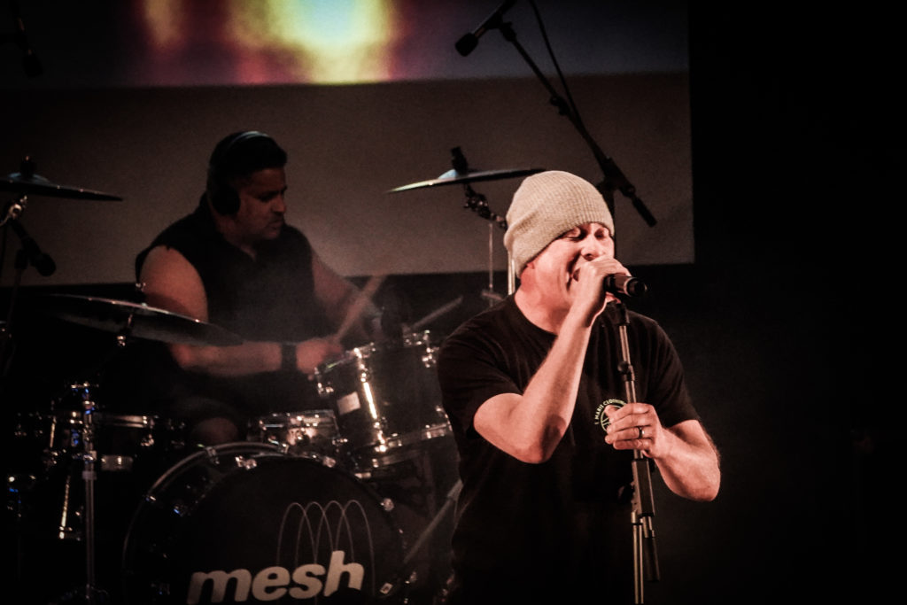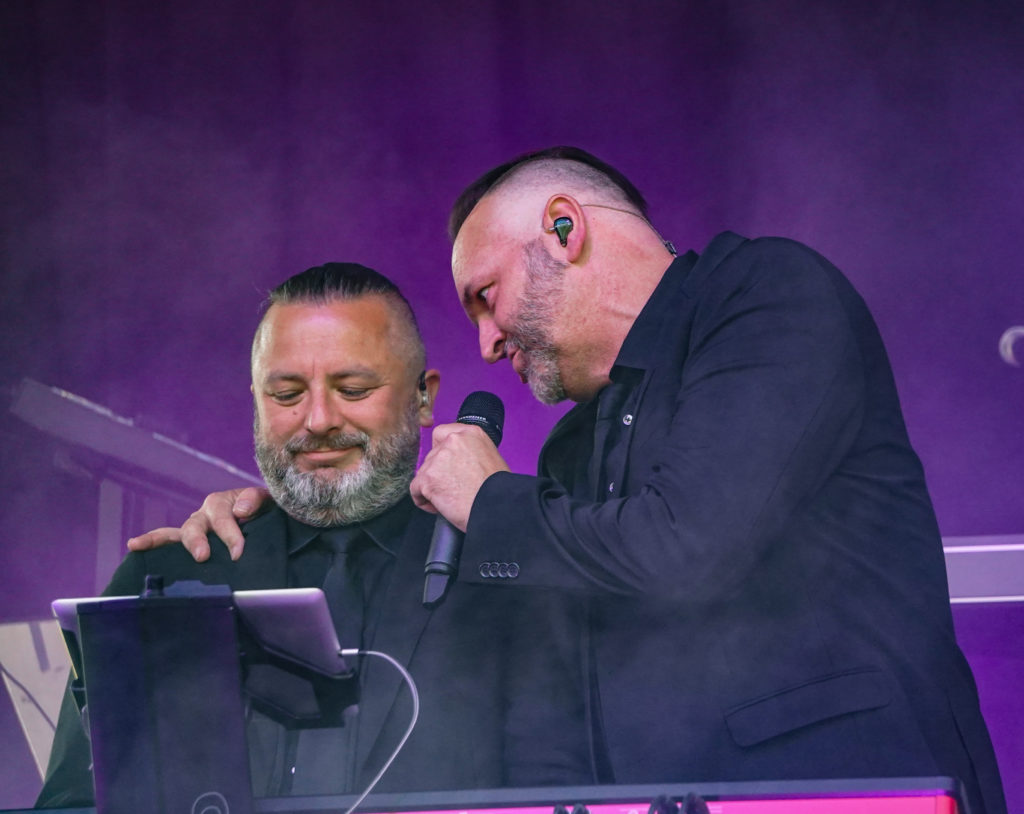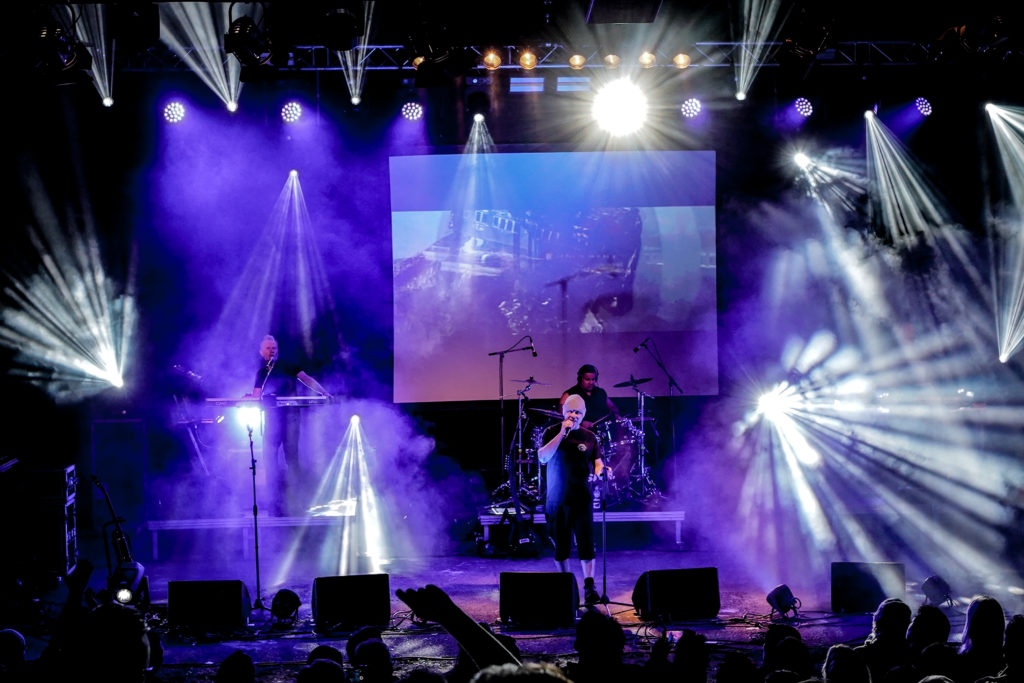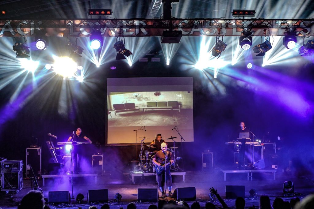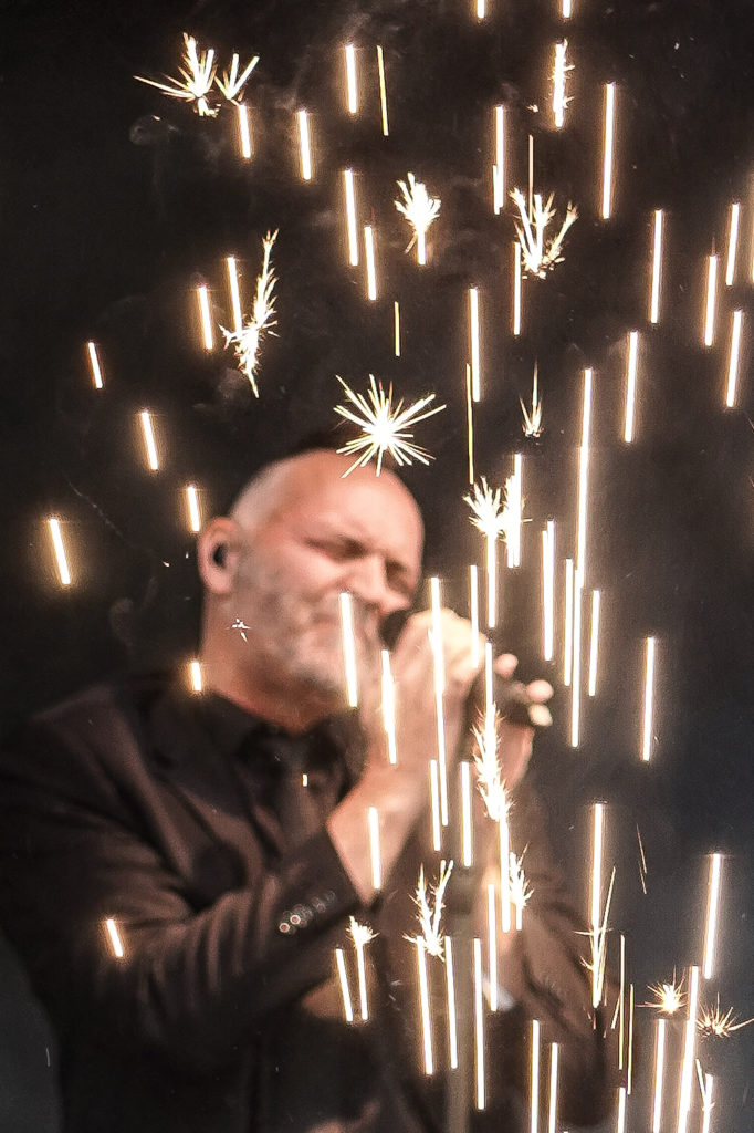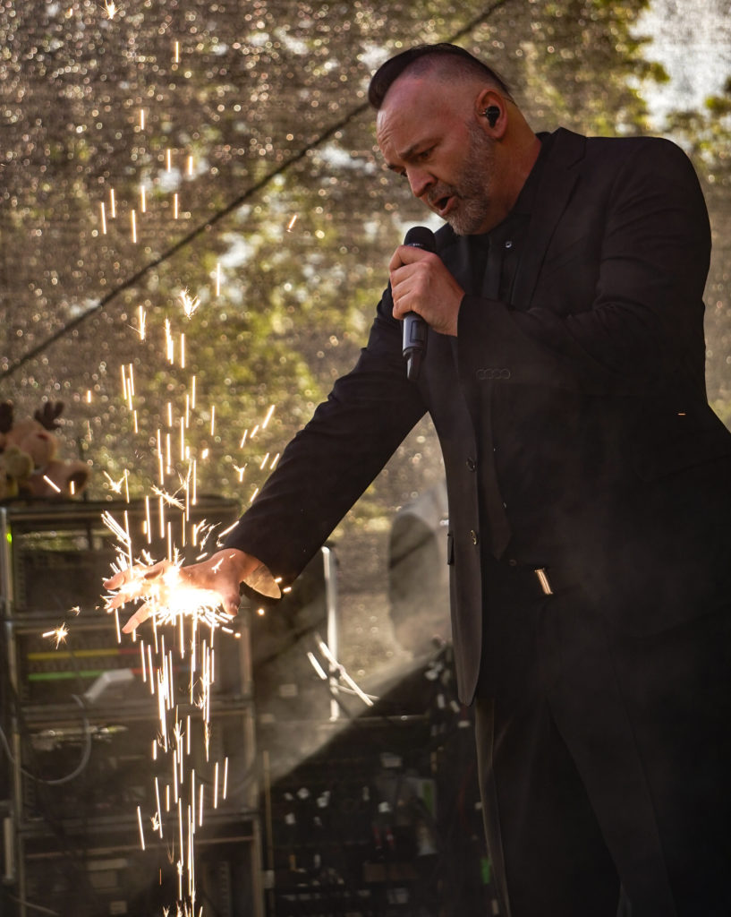 Zum Abschluß eines wunderbaren Tages traten nun mesh an. Die englische Synthi-Pop Band hatte anfänglich mit einigen Tonproblemen zu kämpfen, das Micro von Mark Hockings brachte keinen Ton heraus und es dauerte einen Song lang, bis es von den Verantwortlichen behoben werden konnte. Aber auch das wurde mit lautem Applaus quittiert, ein freundliches Publikum unterstütze die Band und so konnte mesh ihr Konzert fortsetzten. Das eher ruhige Set kam bei den Fans gut an, ein toller Ausklang eines gelungenen Tages. 20 Songs trugen uns in die langsam abkühlende Nacht, das Lichtspiel auch hier wieder großartig. Seht hier ein paar Bilder: