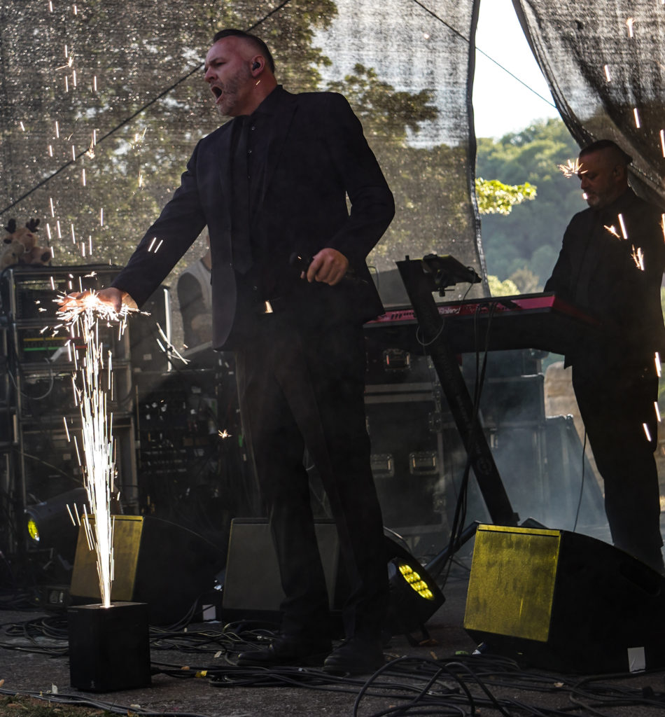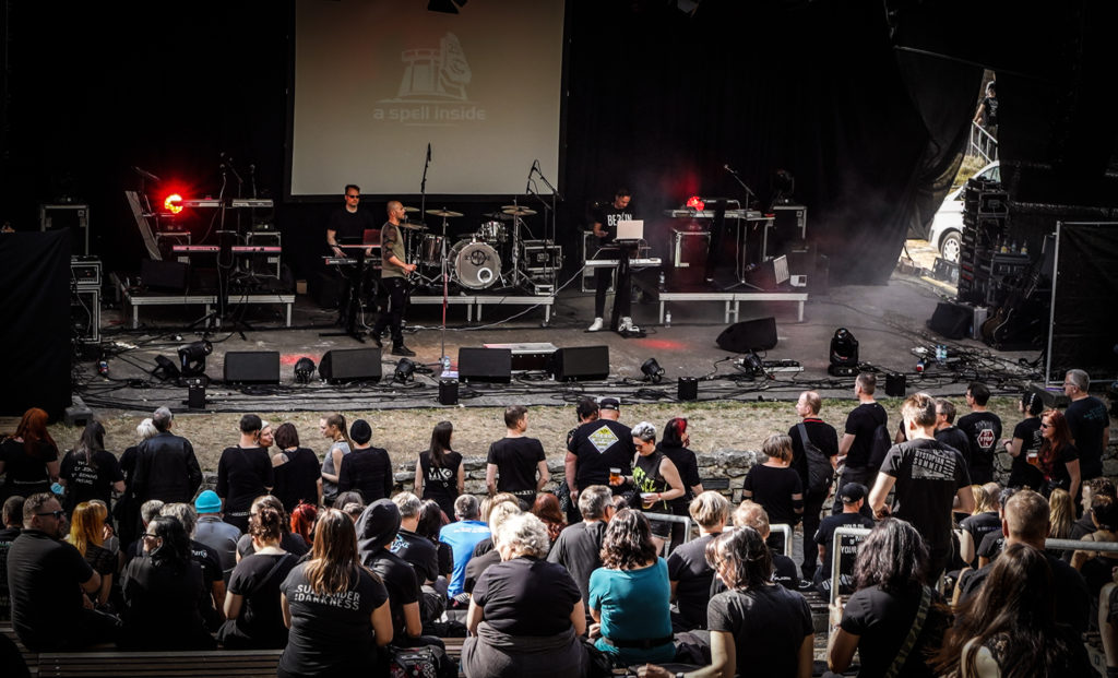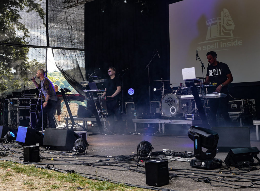 Den Anfang machte A Spell Inside. Die deutsche Elektro Pop-Band spielte ein Set von 7 Songs, noch waren nicht alle Reihen gefüllt, doch so langsam wurden die Ränge im Amphitheater der Niederburg schwarz.
