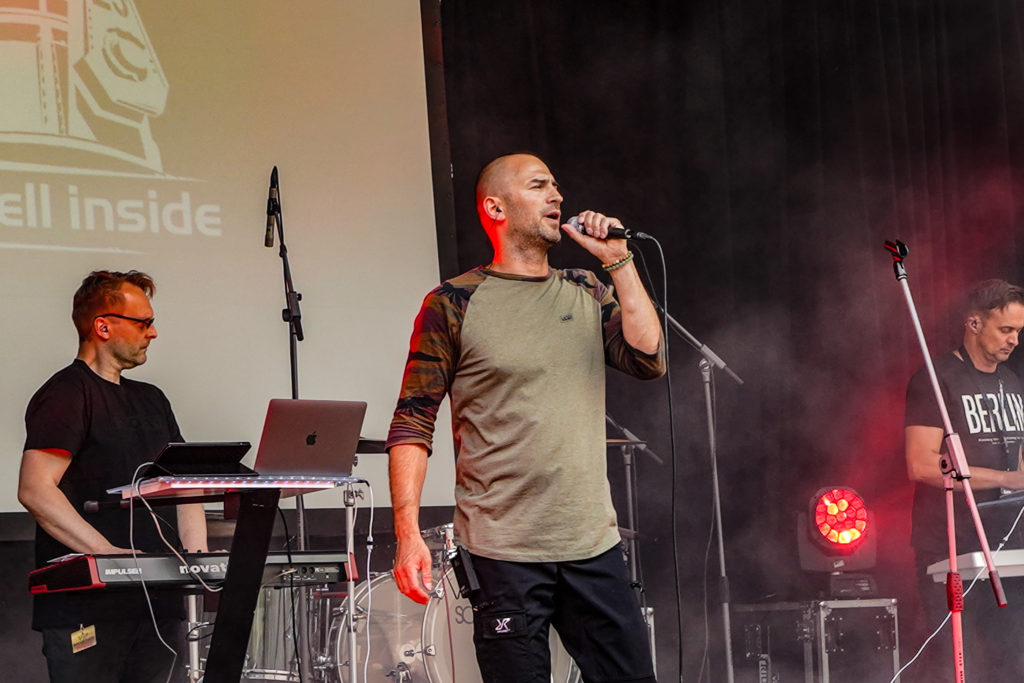 Die drei Musiker um Michael Röder sind eigentlich schon Urgesteine in der Szene und gaben alles unter der heißen Sonne von Kranichfeld, um das Publikum in Stimmung zu bringen. Mit einem Mix aus ruhigen Wave und harmonischen Elektro Pop fing das Line up schon vielversprechend an.