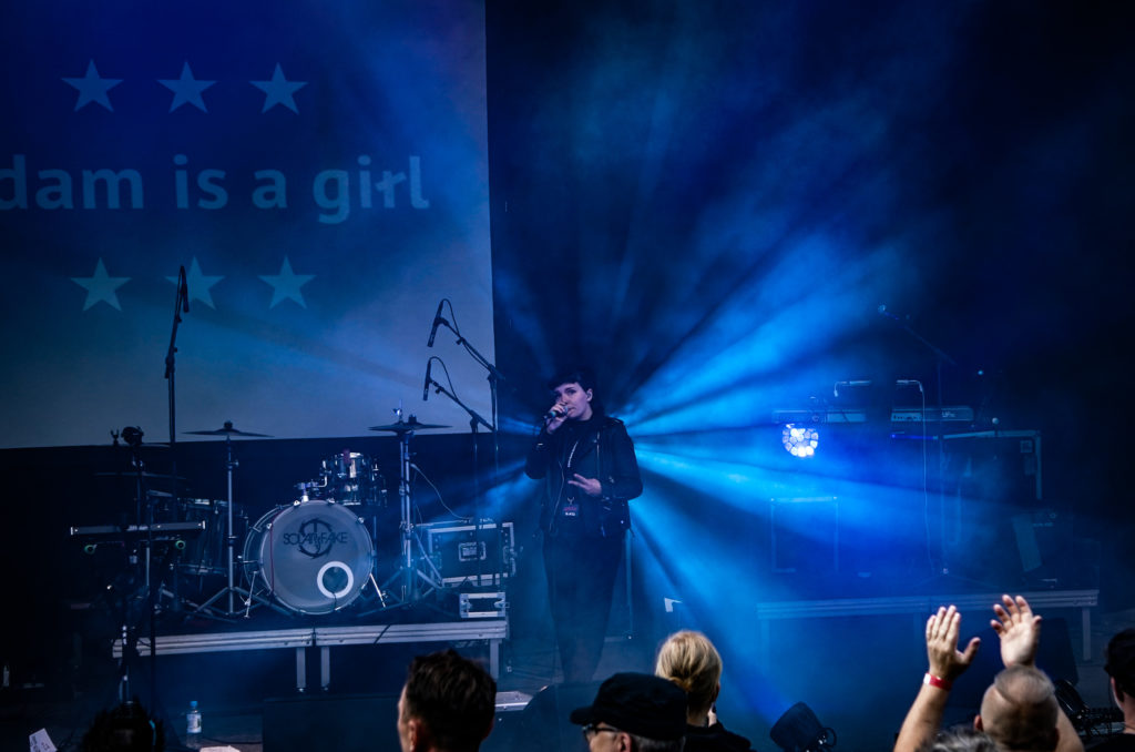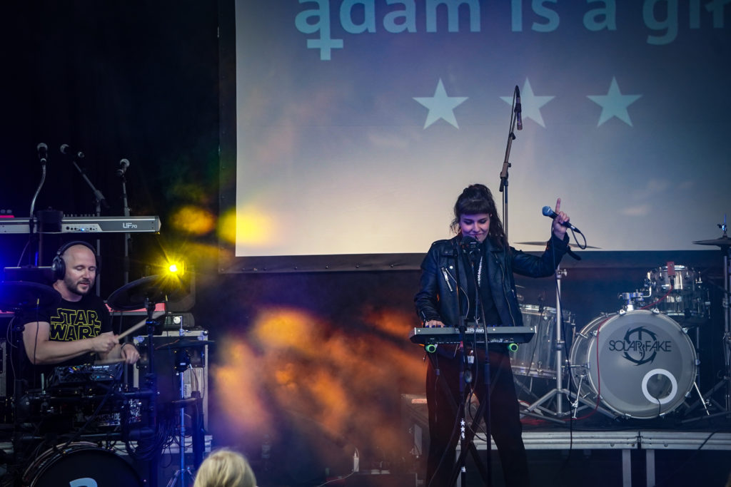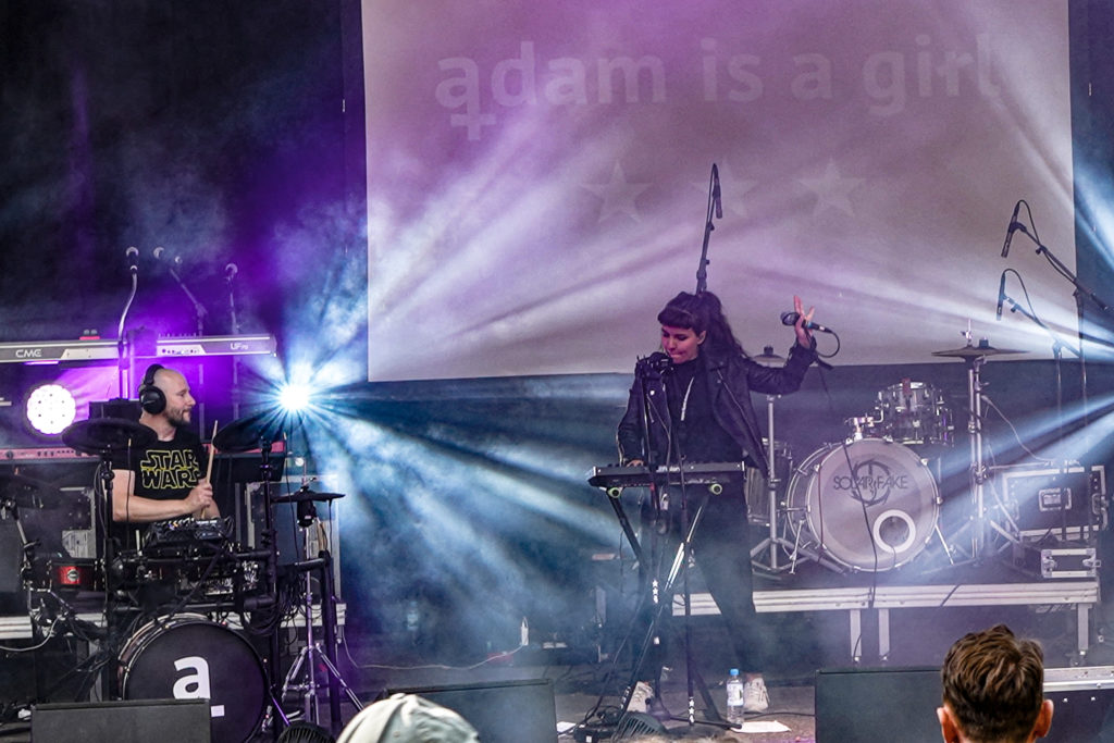 Wir mussten nicht lange warten und Adam is a Girl begannen Ihr Set, diesmal mit 10 Songs. Auch wenn der kühle und klare Elektro-Sound von Anja Koch und Alex Pierschel nicht für die nötige Abkühlung sorgte, kamen die Zwei zusätzlich auf der Bühne ins Schwitzen, als plötzlich bei “Your Silence” der Ton ausfiel. Sympatisch wie wir Anja kennen sang sie einfach weiter und lächelte die kleine Panne so erfrischend weg und eroberte damit noch die restlichen Herzen des Publikums. Die Synthie-Klänge gepaart mit Anjas klarer Stimme und den elektronischen Beats bleiben einfach im Ohr und im Herz.