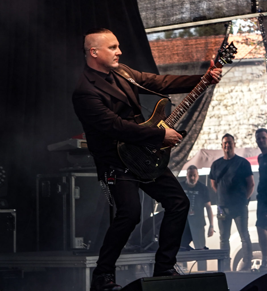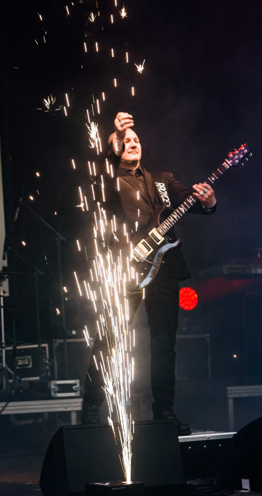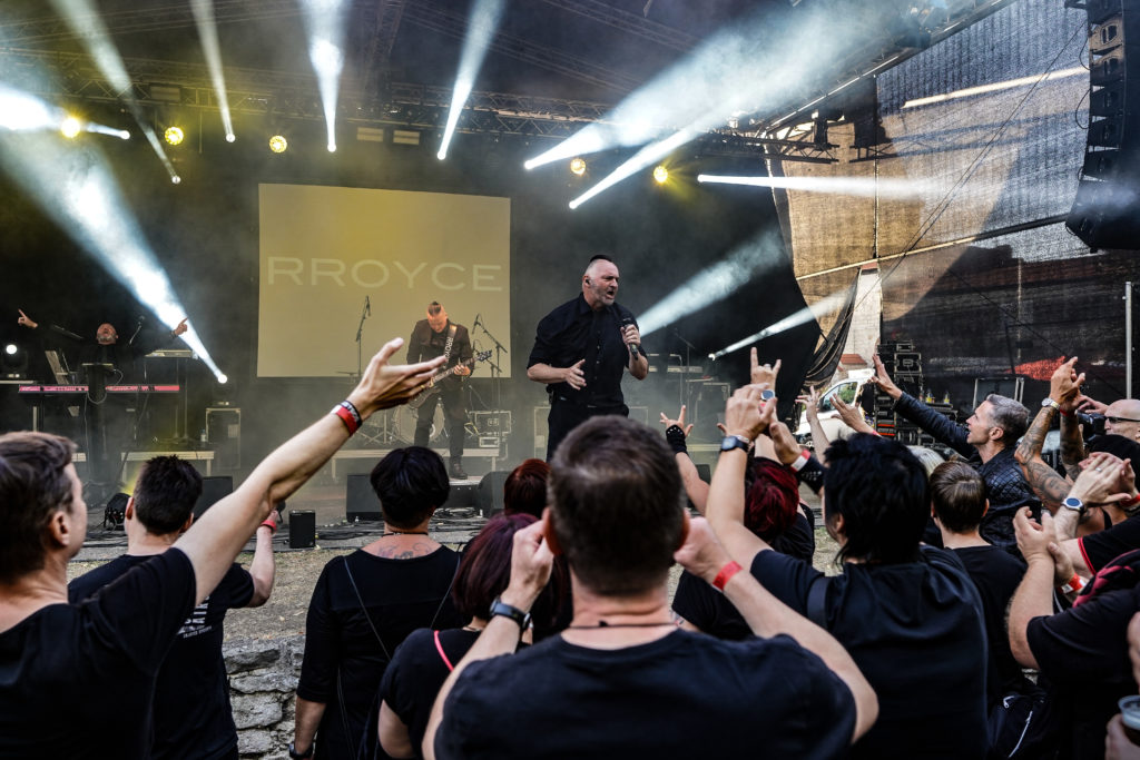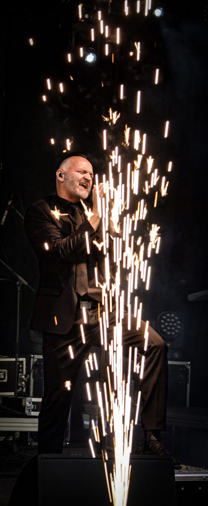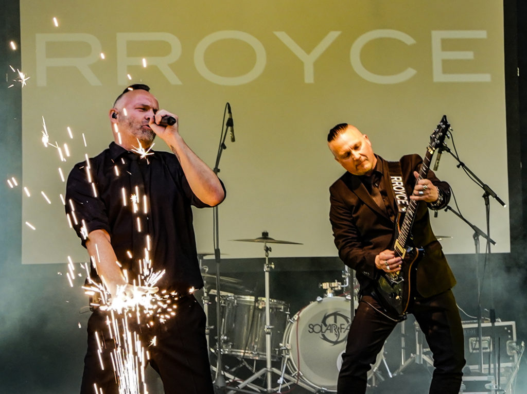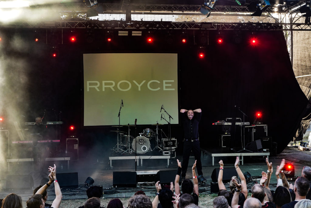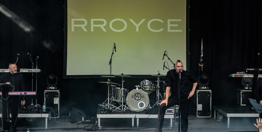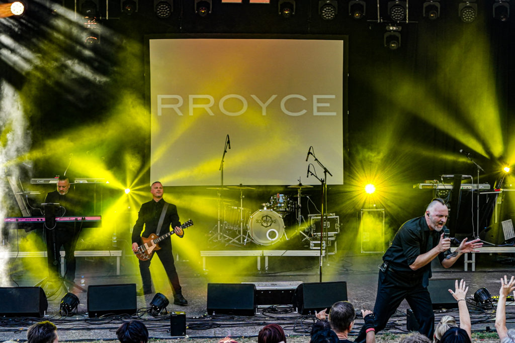Nicht nur als Moderator des Abends machte der Frontmann der nun folgenden Band einen super Job. Der zu Späßen aufgelegte Casi führte uns durch das Programm. Nun selbst mit seiner Band RROYCE auf der Bühne, wirbelte ein publikumsnaher Dortmunder über das “Parkett”, spielte im wahrsten Sinne des Wortes mit dem Feuer, dem Publikum und den Fotografen. Das Trio mit Al und Kay spielte 16 Songs, darunter “Run, Run, Run” mitten im Publikum und baute die Fans in den ersten Reihen in seine Performance ein. Es war von Minute Eins ein Vergnügen, den Anzugträgern zuzusehen und zu hören. Hier meine Eindrücke des Abends, langsam wurde es dunkler und das Licht tat sein Übriges, die Stimmung zu halten. Zu meiner großen Freude wurde auch “Paranoiac Sl” gespielt, der Ohrwurm des Sommers für mich, großartiges Video.