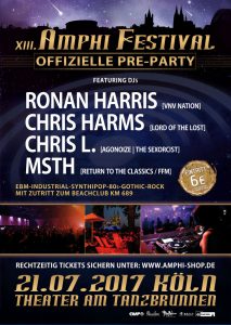 Du bist hier: Startseite1 / T-Shirts & Co.2 / Amphi – Festival 20173 / Amphi-PreOpening-Party am 21.07.2017