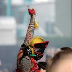 Danach folgte ‚Satan In Wonderland‘ – zu diesem Song gibt es auch einen tollen Videoclip. Generell sind die Videos der Band sehr sehenswert – klickt doch einfach mal bei YouTube rein. Den nächsten Song widmete die Band ihrem Gitarristen Von Marengo, der derzeit auf mehreren Hochzeiten tanzt und auch Bandmitglied bei Florian Grey und Faderhead ist. Deshalb nennen sie ihn liebevoll ‚Bitch Next Door‘. Hell Boulevard hatten auch eine ganz besondere Coverversion mit dabei. Britney Spears‘ ‚Hit Me Baby One More Time‘ kam beim Gothic Publikum richtig gut an. Tolle Stimmung herrschte dann bei ‚Zero Fucks Given‘. Besonders bei ‚Dead Valentine’ merkte man, wie gut der Sound an der Main Stage war. Da es heute ziemlich trüb war, konnte man schon kurz vor Mittag auch perfekt die Bühnenlichter sehen. Sänger Mattǝo bedankte sich dann bei der Crew und vor allem bei den Fans für das zeitige erscheinen. Außerdem verabredete er sich für später mit den Fans zur Autogrammstunde. Seine Ansagen kamen ziemlich gut an, da er beim Sprechen Englisch und Deutsch mixt.