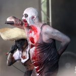 Vor dem Auftritt der nächsten Band bemerkte Moderator Dr. Mark Benecke einen mit Blut verschmierten Scheinwerfer auf der Bühne und ahnte nichts Gutes. Außerdem erklärte er den Festivalbesuchern nochmal ausführlich, wie man die nächste Band richtig ausspricht: „Nicht Ost und Front, nicht Ost plus Front, einfach Ostfront“. Und nun konnte es weitergehen mit Gitarrenmusik. Die Bühne war wie gewohnt bei Ost+Front Konzerten ziemlich interessant dekoriert und die Jungs trugen wie immer total coole Klamotten.