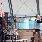 Die Stimmung war von Beginn an richtig gut. Da hat der Veranstalter bei der Auswahl der Vorband einen Volltreffer gelandet. Die Bühne war von der Größe her perfekt und bot Sänger Sven genug Platz, um sich auszutoben. Er hatte sich sogar einige Male umgedreht, da hinter der Bühne auf der Oder einige Schiffe und Boote kurz angehalten hatten. Da kamen mit Sicherheit Erinnerungen an das Blackfield Festival in Gelsenkirchen auf. Das Umfeld der Location in Schwedt erinnerte schon etwas an den Ort des ehemals beliebten Gothic Festivals. Die Fans hatten, genau wie die Band einen tollen Abend. Als Sven den Song ‚Observer‘ ansagte, bemerkte Drummer Jens sofort, dass sich Sven auf der Setlist verguckt hatte. Das kann schon mal passieren, wenn die Sonne blendet. Aber ein kurzer Ruf von hinten, und weiter ging es mit ‚Where Are You?‘. Der Song ‘The Pain That Kills You Too’ vom kommenden Album, den Solar Fake schon seit Ende letzten Jahres mit im Set haben, bot den Fans neben einigen weiteren neuen Songs einen Vorgeschmack auf das neue Album. Sven hat dann die begeisterten Zuschauer zur großen Solar Fake Tour 2019 eingeladen. Sie wird im Januar und Februar stattfinden. Den nächsten Auftritt hat die Berliner Band Ende Juli beim Amphi Festival in Köln.