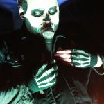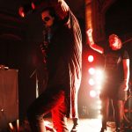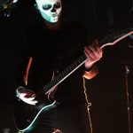 Das Publikum war heute natürlich bunter gemischt, als sonst bei Johnny Deathshadow Konzerten. Unter Daniela’s Freunden und Gästen fand man Rocker, Punks, Gothics, Rockabilly und Metal Fans; aber auch Damen, die sonst im Büro sitzen hatten heute ihr besonderes Erlebnis. Die Band begann ihr Konzert wie so oft mit dem Song ‚Shadow‘, der mit seinen harten Gitarrenriffs gleich ordentlich für Stimmung im Club sorgte. Die ersten begannen sofort mitzutanzen oder mit den Köpfen zu wackeln. Da nicht jeder heute Abend die Band kannte, stellte Sänger Jonathan seine Band mindestens drei Mal vor, man merkte also, dass auch die Jungs auf der Bühne absolut Spaß an diesem Abend hatten. Nach Songs wie ‚Bleed With Me‘ und ‚Black Clouds, Dark Hearts‘ war die Stimmung schon relativ zu Beginn auf einem hohen Level, und auch die ‚Bürodamen‘ trauten sich nach vorn. Wie fast immer bei Konzerten der Band war die Bühne nur spärlich beleuchtet und schaffte eine mystische Atmosphäre, die perfekt zu den Jungs mit der Schminke und den Masken passte. Viele ihrer Songs sind im Laufe der Jahre zu echten Klassikern geworden; trotz der Härte immer wieder melodiös und mit einer Garantie zum mitsingen. Nach gut einer Stunde ging mit dem wohl größten Hit der Band, ‚Kill The Lights‘ ein unvergesslicher Abend zu Ende. Aber zur großen Überraschung gab es dann noch einen Wunschsong zum Geburtstag für Daniela. Sie hat sich ‚Black Eyes‘ ausgesucht, ein Song von der EP ‚Blood & Bones‘ aus dem Jahr 2013, den die Band seit etwa drei Jahren nicht mehr live gespielt hat. Und natürlich durfte oder musste Daniela nun mit auf die Bühne und wurde von allen gefeiert. Anschließend sangen alle ‚Happy Birthday‘ für sie.
