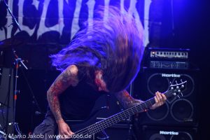Eines der Highlights war ohne Zweifel der Auftritt von Blood God, deren Sänger natürlich auch durch die Death Metal Band Debauchery bekannt ist. Heute Abend ging es aber eher in die Richtung Hard Rock. Die Bühne war total cool geschmückt, an den Mikrofonständern befanden sich zahlreiche Totenschädel und große Ketten aus Metall. Die Fans waren inzwischen total aus dem Häuschen., die Headbanger versammelten sich in der ersten Reihe. Die Stimmung war total ausgelassen, aber abslout entspannt und friedlich. Die Fans feierten die Stuttgarter Band bei ihrem kurzweiligen 50 minütigem Set.