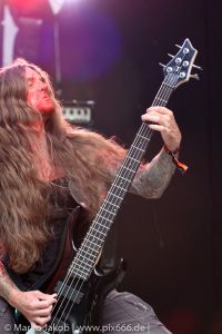 Die Band Krater gibt es seit 2004. Sie waren die erste Band heute, die länger als 30 Minuten spielen durften. Sie boten eine tolle Black Metal Show. Die Fans kamen nun inzwischen auch immer dichter und zahlreicher vor die Bühne. Es schien fast so, als hätte sich keiner getraut, als es noch hell war. Coole Gitarrenriffs und wehende, lange Haare. Das kam beim Publikum richtig gut an.