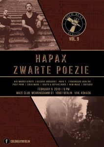 Du bist hier: Startseite1 / T-Shirts & Co.2 / Konzertreview: Zwarte Poëzie und Hapax im Maze Berlin, 09.02.20193 / Cold Beat Berlin Hapax & Zwarte Poezie