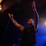 Der wahr gewordene Alptraum der Schwiegermütter betrat als Abschluss dieses Konzertabends im Astra Kulturhaus in Berlin Friedrichshain die Bühnenbretter: Combichrist, die wüsten Elektrorocker aus Norwegen ließen mit ihrer Show kein Auge trocken und keinen Gehörgang verschont. Sänger Andy LaPleagua – schwer tätowiert, mit irrem Blick und wohl gerade in einer Beziehung mit Sophia Thomalla, zeigte dem Publikum, dass er und die Band in einer Superstimmung sind. Combichrist lieferten bis kurz vor 1 Uhr einen krassen Titel nach dem Anderen ab.